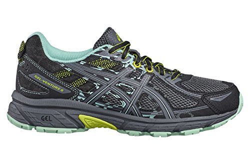 Asics Gel-Venture 6 Women's Running Shoes With a redesigned midsole and upper, the Asics new GEL-Venture 6 GS delivers excellent shock absorbing comfort, so you can take on the trail with ease. Upper Mesh uppers will encase each foot in breathable comfort. Tiny perforates in the fabric increase airflow; creating a better, healthier environment for little feet to thrive in. Abrasion-resistant overlays increase the shoe's durability and reinforce its trail-worthy state, wrapping the foot to provide lateral support and reducing in-shoe slippage for a smooth, distraction-free ride. A stitched-down bumper covers the toes to defend you against roots, rocks and general trail hazards. Midsole Supplemented with a removable, moulded sockliner, EVA resides in the midsole to provide lightweight cushion and underfoot comfort. Sitting beneath this midsole platform is a rearfoot GEL Cushioning System, implemented to attenuate shock; sparing your little one's joints as they strike down onto hard, unforgiving surfaces. Outsole A rugged, trail-specific outsole completes the Gel-Venture 6; employing reversed lugs to gain uphill and downhill traction on all types of terrain. Asics' Trusstic System works diligently to reduce the overall weight of the shoe, without sacrificing stability; so you get a lightweight but supportive trail running shoe. Built with the mini explorer in mind.