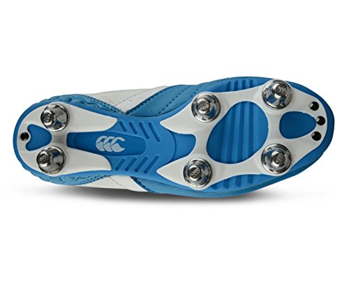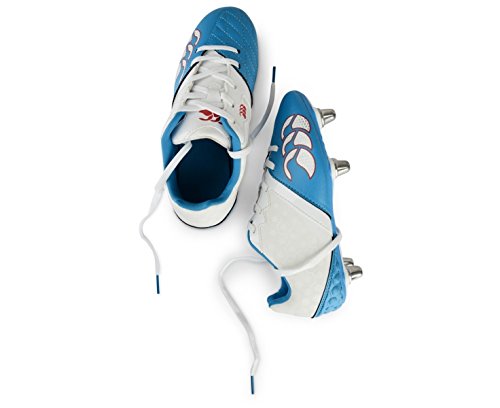 Designed for the mini Richie McCaw, the Phoenix Club provides superb traction thanks to the deeper stud configuration. The Phoenix Boots have been developed with a tough, supportive, synthetic upper for those who do the harder yards. Add to that a neoprene tongue and the overall fit of the boot results in that which is more in sync with the contours of the feet. The nature of the last employed is more traditional in size meaning great power distributed through the sole of the shoe when in collision. Canterbury introduce TPU within the sole of the boot as it more flexible and harder wearing than standard PU; with that in mind this unique material combines lightness, strength and flexibility with equal aplomb. As mentioned, the stud configuration yields more grip on softer surfaces, whilst concurrently the longer length design of the studs provide enhanced levels of support over more conventional rugby boots. Completed with reinforcement engaged within the heel and arch further, support and improved grip follow suit. Designed for the back row forward chasing contact.