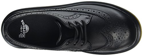 Dress them up with classic rebel vibes! The kid-sized Dr. Martens 3989 lace-up shoes have essential Dr. Martens DNA like 3-eyelets and grooved edges, and feature a T. Lamper leather upper, a soft and lightweight leather.Cushioned, removable insole and textile lining provide comfort when needed. These brogue style shoes sit on the signature oil-and-fat, acid, petrol, alkali resistant Dr. Martens Air Cushion Sole made of rubber and featuring the Air Wair technology to provide support while walking and traction on various surfaces.Based on the adult silhouette, these small brogues are endlessly stylish, and are made with a more flexible outsole to accommodate growing feet.