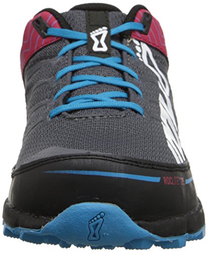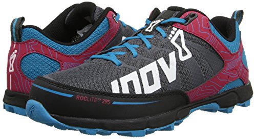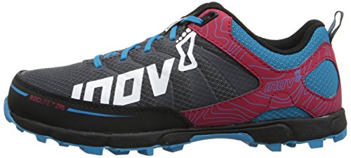 The Inov-8 Roclite 295 Women's Trail Running Shoe blends high levels of comfort, breathability and performance. The patent pending Fascia BandTM aids propulsion efficiency throughout the gait cycle. Combining durable underfoot cushioning with an excellent upper fit, the Roclite 295 protects the foot from hard, aggressive trail terrain. A 5 finger, 2nd generation polymer Meta-ShankTM aligns with each individual metatarsal for increased underfoot impact protection. Meta-FlexTM, an enlarged forefoot flex groove, can be found along the outsole lending the forefoot greater freedom of movement and allowing you to be more reflexive. It features Inov-8's on-the-shoe gaiter pockets, so the inov-8 race ultra gaiter can be attached and all debris kept at bay. A new rubberized toe bumper delivers protection. This fit is specifically designed for women.