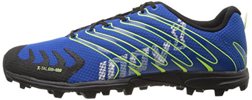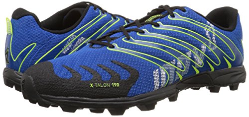 The Inov-8 X-Talon 190 is a super lightweight, mountain/fell shoe with a low profile midsole. It is comfortable, stable and grippy, with a sticky rubber outsole. A stripped-back upper retains the Durable Water Repellent (DWR) quality of its forebears with a reduced 3mm drop. The talon-like grip and incredible flexibility are also retained, meaning this shoe really flies over mountains, fells, obstacles and all soft ground. A replication of the plantar fascia ligament increases propulsion efficiency and reduces fatigue. Featuring a 3mm differential between the forefoot and heel with a 3mm footbed, the X-TalonTM 190 ensures that your foot remains close to the ground in its most stable position. This shoe incorporates a meta-flex groove which is anatomically aligned in front of the metatarsal heads to provide a natural forefoot flex. This shoe uses Inov-8's proprietary sticky rubber compound which has been specifically developed using climbing rubber technology. This rubber optimises grip in wet conditions and offers great durability. The upper webbing support is anatomically positioned to cradle the forefoot behind the metatarsal heads and provide a secure foot hold. Performance Last - A precise fitting last yields minimal internal movement when contouring, ascending and descending.