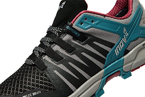 Inov8 Roclite 305 GTX Women's Trail Running Shoes Run with confidence and comfort with this trail running shoe. The ROCLITE 305 is the ultimate shoe for those seeking increased comfort and protection when running over multi terrains. Super-durable upper materials provide a premium fit and feel, while the outsole's versatile grip delivers supreme confidence no matter how diverse or unpredictable the terrain. Standard Fit Inov8's standard fit offers a close-fitting heel that locks the shoe in position, while a wider toe box allows the toes to splay when running naturally or lifting weights. Standard fit suits those with wider feet and athletes using the product for long sessions. Gore-Tex Upper Shoes engineered with GORE-TEX Extended Comfort product technology are designed for indoor and outdoor use in moderate and warmer conditions or during higher activity levels. They are durably waterproof combined with optimised breathability and are the ideal solution for people who value outstanding climate comfort and heat release. The Inov8 Roclite 305 Running Shoes are constructed from a flexible nylon mesh upper with mesh inner lining providing all round breathability and key ventilation, keeping your feet cool and dry through every step. Providing stabilisation and security to the upper fabric are super-durable upper materials when combined with an 8mm drop ensures outstanding comfort for you whilst you're out on the run. Built around the natural anatomy of the foot, the new ADAPTERWEB met-cradle adapts to the natural movement and swelling of the foot during motion, whilst the X-LOCK system holds and locks the heel in place to offer increased support and a better fit. The ADAPTERWEB met-cradle wraps around the midsection to coincide with an aesthetically designed fabric overlays which in turn enables a close tight fit with maximum support and reducing torsion to maintain the shape and form, while still looking good. An integrated tongue gusset keeps all debris