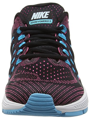 Nike Air Zoom Vomero 11 Women's Running Shoes ULTRA-SOFT RIDE Nike Air Zoom Vomero 11 Running Shoe is packed with even more plushness than its predecessor with a comfort fit collar that hugs the foot and soft cushioning for a smooth transition with added impact protection. Flymesh Upper IMPROVED FIT The Nike Zoom Vomero 11 Re-engineered Flymesh delivers an improved forefoot fit while providing the ventilation and support you need. New softer materials in the collar offer plush comfort, and the foam tongue helps cushion the top of your foot to help reduce lace pressure for an all round comfortable. The upper of the Nike Air Zoom Vomero 11 still guarantees flexibility, breathability, adaptive fit and protection, thanks to the features that are present in the construction. The topmost layer is the Open mesh coverage with overlays. Allowing fresh air to permeate the interior footbed while a seamless upper ensures an irritation- free environment. In the heel, there is the Molded FitFrame for additional support, as well as the Reflective Heel Counter. The Strobel Last connects the midsole to the outsole, while the Dual- layer Ortholite sock liner ensures additional cushioning and comfort in the underfoot. Lunarlon Midsole RESPONSIVE CUSHIONING The Lunarlon midsole of the Nike Air Zoom Vomero 11 is far from the expected minimal profile. Its structure is packed with cushioning technologies that could rival minimal stability shoes. However, these features may help to provide better shock absorption, responsiveness and protection in a plush and resilient platform. The Zoom Air pockets can be found in the forefoot and heel of the shoe. The full length Lunarlon foam takes care of the underfoot cushioning. Lastly, the midsole follows the Natural Motion Engineering design, which makes use of the Flex Grooves in the outsole to facilitate a more natural and flexible ride. Outsole STRIKING SPEED The outer sole of the Nike Air Zoom Vomero 11 is built for the road, track and gravel, b