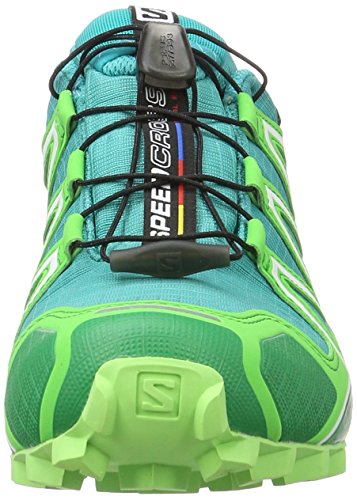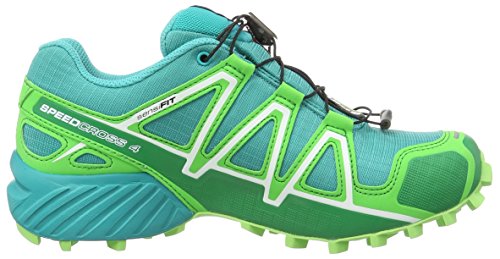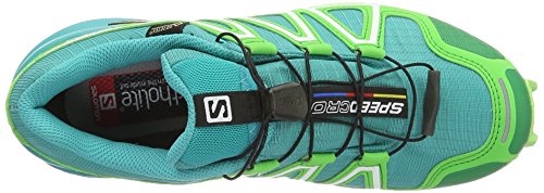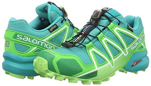 The Salomon Speedcross 4 Gore-Tex Women's Trail Running Shoe Conquer any trail in the new Salomon Speedcross 4 Gore-Tex Women's Trail Running Shoes. The latest iteration in the revered Speedcross series, the Speedcross 4 features an updated outsole pattern for even greater traction and higher durability, to keep you moving forwards no matter what the trail throws at you. This special edition includes a Gore-Tex upper, which keeps your feet dry whilst out battling the trail. Gore-Tex Upper The Speedcross 4 Gore-Tex edition features a fully waterproof, highly breathable Gore-Tex upper. The Gore-Tex fabric actively wicks moisture away from the wearer's foot, whilst preventing water from penetrating into the shoe. The result is an extremely comfortable and dry run, no matter how hard you hit the trail. The upper is also lightweight and abrasion resistant, with highly-durable materials deployed around high-wear areas to minimise damage to your shoes from rocks and branches. The durable PVC Toe Box provides further durability and impact protection. The addition of an Anti-Debris Mesh and a Gusseted Tongue provide the wearer with further protection by preventing pebbles and other debris entering the shoe and causing discomfort. Externally, the Speedcross 4 Gore-Tex features Salomon's Quicklace system, which provides one-pull tightening for a secure fit and easy on/off: simply pull the Kevlar string and the shoe will close evenly for a better fit, which delivers precision adjustment and a secure lock down. A Lace Pocket has also been included in the design to provide easy storage and prevent your laces getting in your way or getting damaged whilst on the trail. Sensifit technology works in tandem with the Quicklace system to cradle the foot from the midsole through to the laces to provide a stable, precise, and snug fit for enhanced support. Full-Length EVA Midsole The midsole has been designed and constructed with responsive cushioning in mind. Salomon have cr