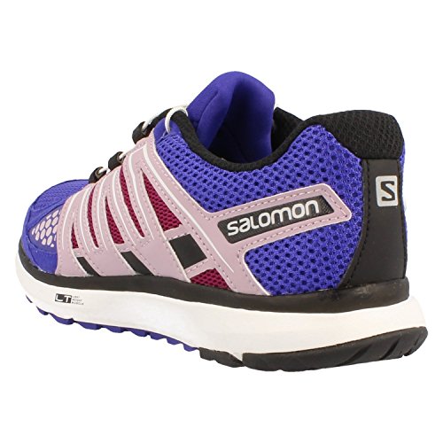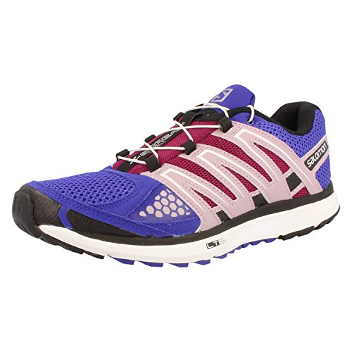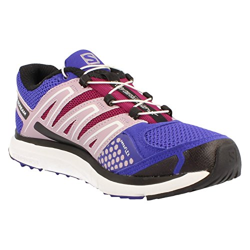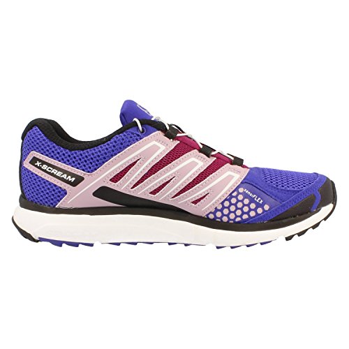 The Salomon X-Scream Trail Running Shoes feature a wide range of technologies designed to offer a dynamic and cushioned ride. SensiflexTM panels support natural foot expansion and forefoot flex, whilst still maintaining support. The SensifitTM system works to cradle the foot whilst in motion, offering you excellent support through the gait cycle. OS Tendon is normally found in natural running and hiking shoes and has been implemented to facilitate better rolling and a softer rebound. The EVA shaped sole increases the performance level of the footwear by adding thicker rubber to the footbed of the shoe for extra cushioning and comfort from the hard terrain. A QuicklaceTM system allow the wearer to tighten and loosen the shoe with a single tug, whilst an accompanying lace pocket provides easy storage for the lacing system. nAdditionally, the shoe's non-marking CONTAGRIP® outsole utilises a blend of specialised rubbers to deliver superb traction on an array of surfaces.