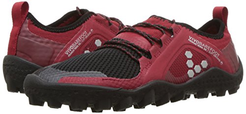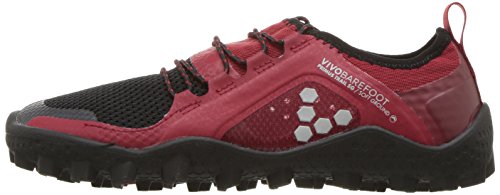 Primus Trail SG is a lean barefoot running shoe, designed for technical off-road trails. Our new soft ground sole gives superior grip on wet terrains. It is quick draining, for minimal wet weight, with an ankle collar for protection./ VivoBarefoot Primus Trail Soft Ground Women's Running Shoes The upper of the Primus Trail Soft Ground Running shoe is made from synthetic multi-ply materials which are superbly lightweight and comfortable against the skin, super durable to withstand the unknown trail conditions and extremely breathable to keep the inside of the shoe as cool and dry as possible. The shoe is all over water resistant thanks to the leather and other materials chosen for the shoes construction, keeping the inside of the shoe as dry as possible in almost any weather conditions. Puncture resistant Pro5 rubber has been used to construct the outsole of the shoe which is the same thickness as most normal shoes but can withstand up to 5 times more impact from rough debris. An Eco rubber has also been used along the shoes outsole which is a no-sew material made from recycled tires that offers the shoe high abrasion resistance where you require it the most. Overall, the shoe is a Vegan-friendly product as is constructed using animal free products and processes.